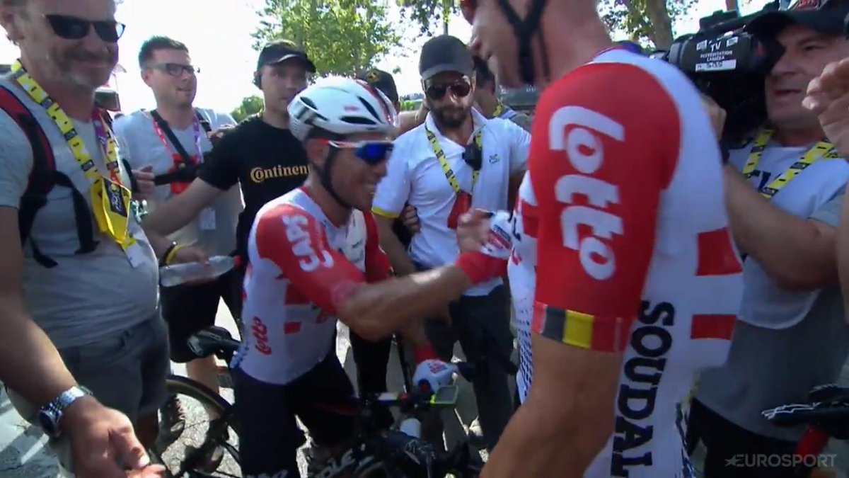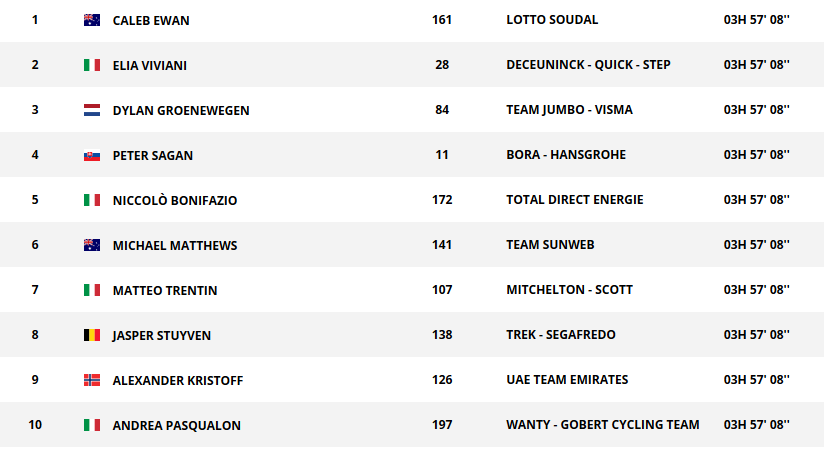 Au lendemain de la deuxième journée de repos, et dans une chaleur étouffante, Caleb Ewan (Lotto Soudal) a décroché la victoire devant l'Italien Elia Viviani (Deceuninck-Quick Step).