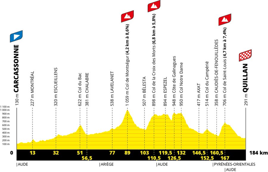La 14e étape entre tranquillement dans les Pyrénées avec une étape pour baroudeurs entre Carcassonne et Quillan