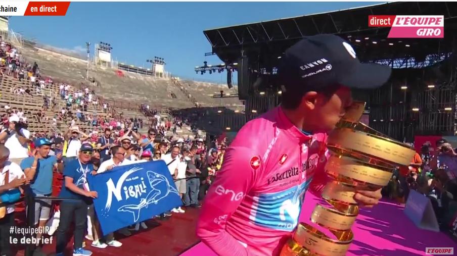 **3 semaines de course pour vivre ce moment à Vérone : voici le podium de ce Tour d'Italie 2019 **
