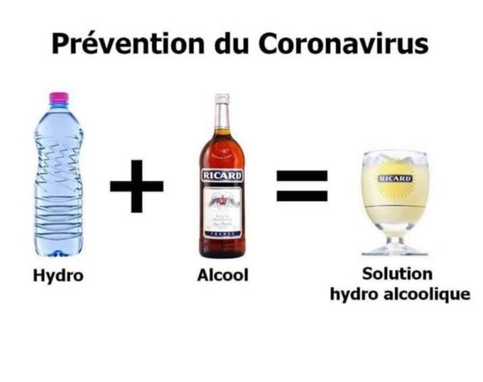christianne aglaglagla L'elixir des pères Chartreux à 71°... mais c'est pour désinfecter l'intérieur, c'est encore mieux que la verte 55 https://www.20minutes.fr/monde/2736595-20200310-iran-27-morts-apres-avoir-pense-guerir-coronavirus-consommant-alcool En Iran, 27 morts après avoir pensé guérir du coronavirus en consommant de l’alcool